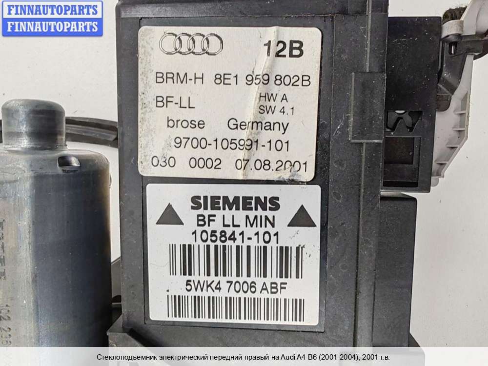 | Стеклоподъемник электрический передний правый | Audi A4 B6 (2001-2004) |